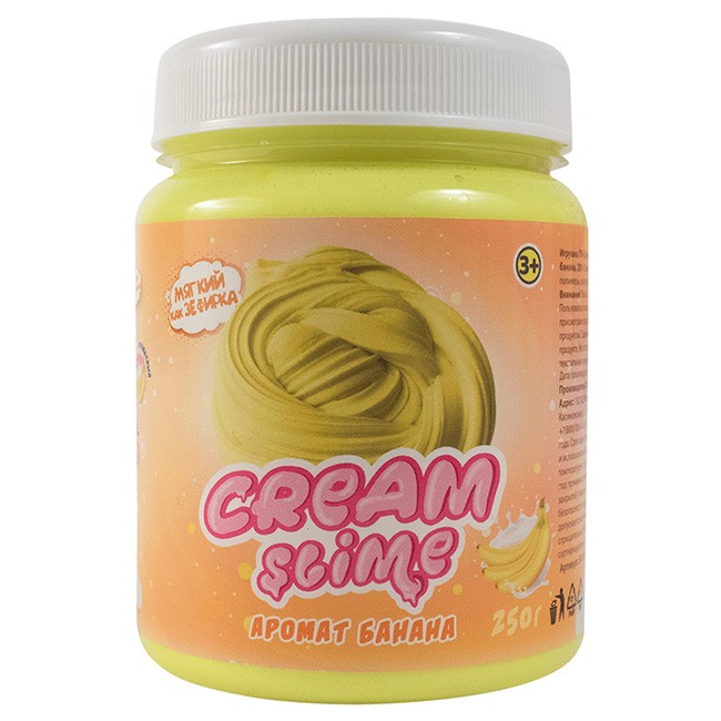 Лизун Cream-Slime с ароматом банана - мягкий и приятный на ощупь, словно зефир. У него приятная кремообразная текстура, которая не пачкает рук, а еще изумительный аромат банана. Слайм можно бесконечно мять и растягивать, что помогает тренировать сенсорику и мелкую моторику, а также снять накопившееся напряжение.
