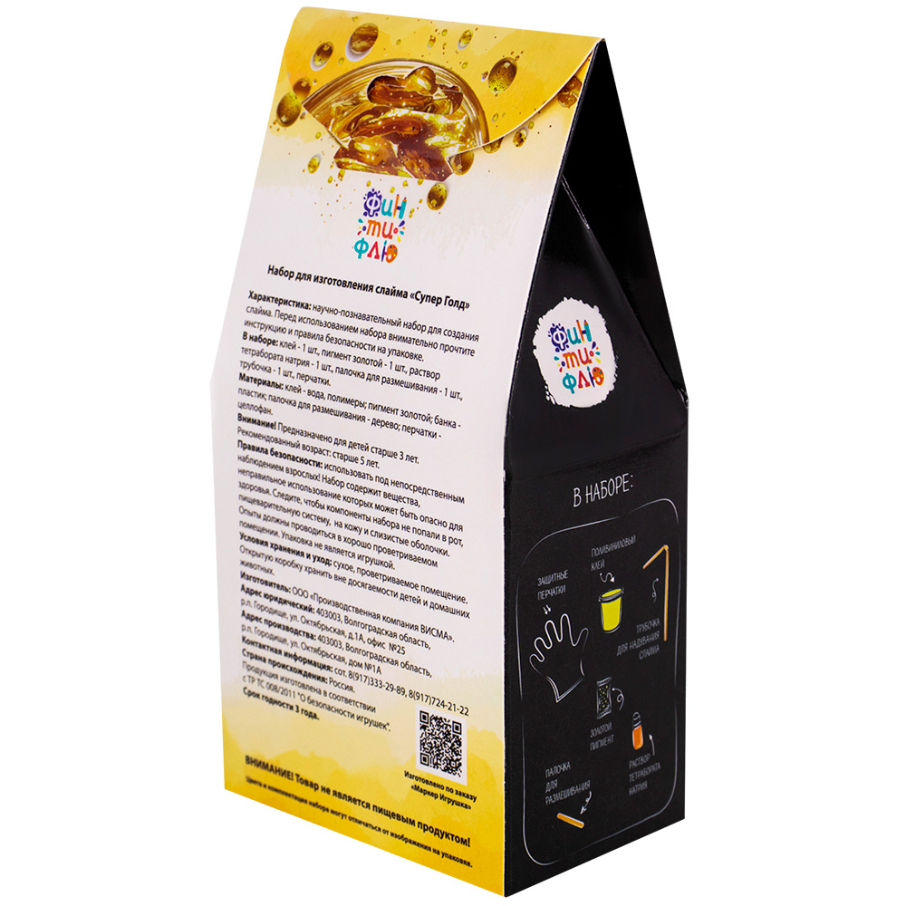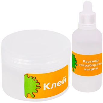 Комплектация: поливиниловый клей - 1 шт., тетраборат натрия - 1 шт., ароматизатор - 1 шт., палочка для размешивания - 1 шт., перчатки - 1 пара, трубочка - 1 шт., золотой пигмент - 1 уп., баночка - 1 шт.