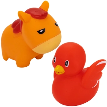 Яркие игрушки выполнены из мягкого безопасного материала и приятны на ощупь. Если сначала набрать воду в игрушки, а потом нажать на них, то брызнет тонкая струя воды, что, несомненно, развеселит вашего малыша.