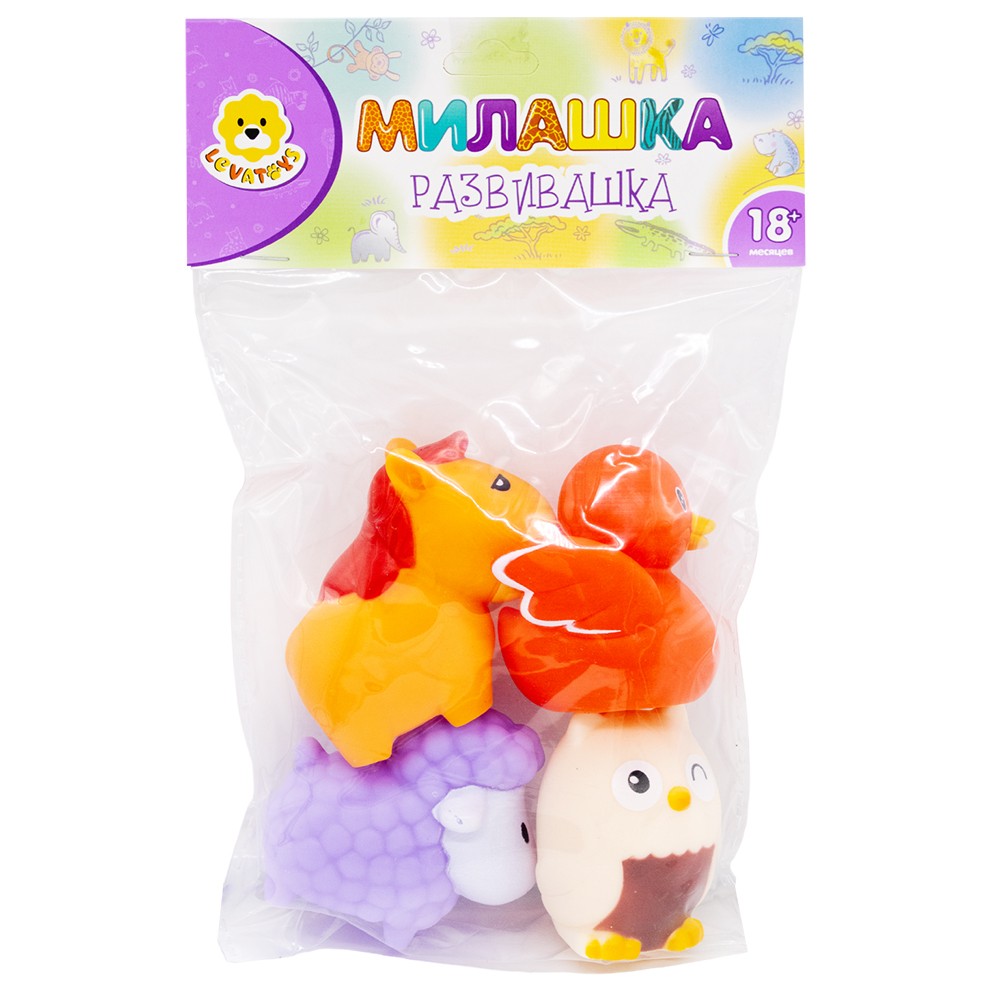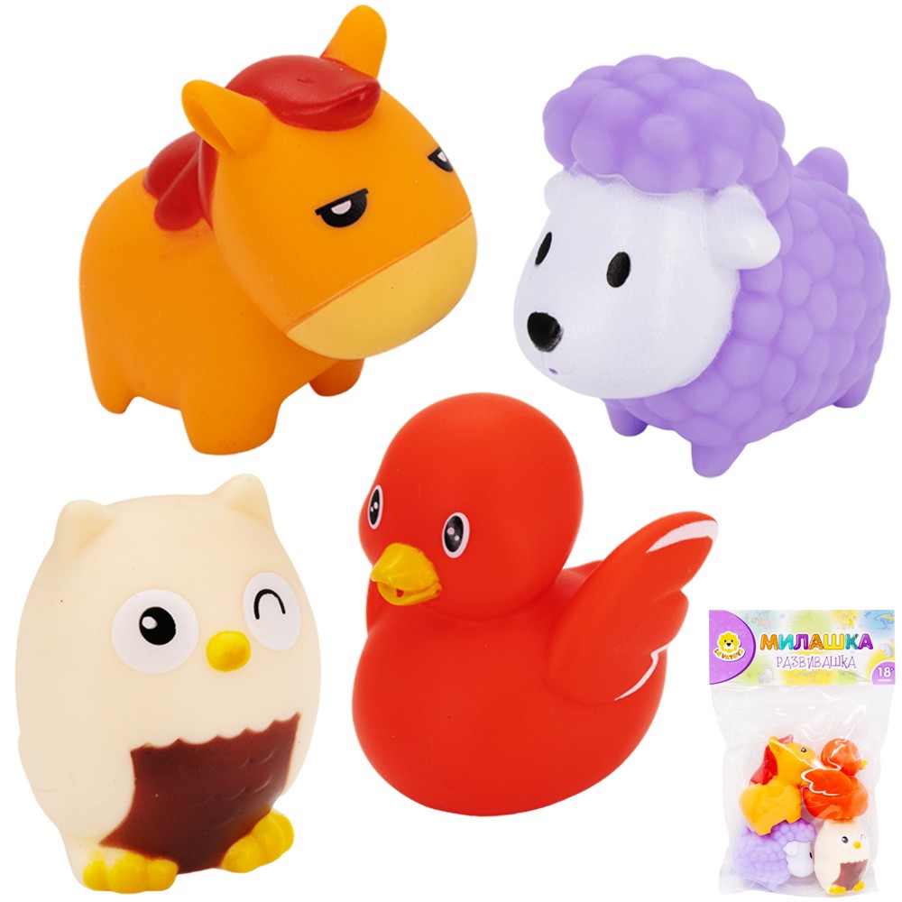 Комплектация: 4 резиновые фигурки (сова, барашек, утка, лошадка)