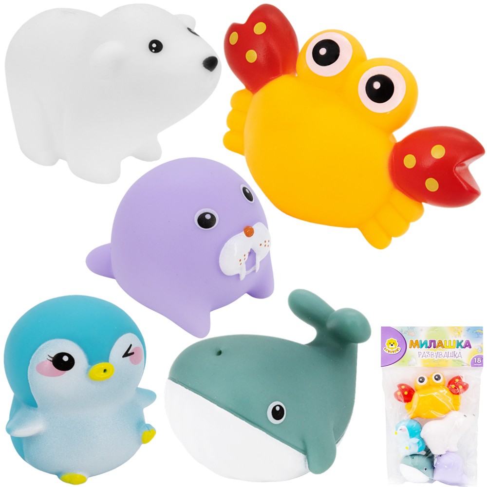 Комплектация: 5 резиновых фигурок (краб, белый мишка, морской котик, кит)