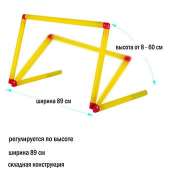 Размеры (см): ширина 45 h от 10 до 86 смУниверсальный барьер может использоваться как в помещении, так и на улице. Изготовлен из пластмассы. Конструкция регулируется по высоте от 8 до 60 см в зависимости от необходимой тренировки. Занимаясь с таким тренажером, дети смогут развить координацию, выносливость и натренировать мышцы ног.Игрушка изготовлена из высококачественных материалов. Изделие проверено на соответствие требованиям технических регламентов Таможенного Союза и имеет сертификацию ЕАСОставить отзыв