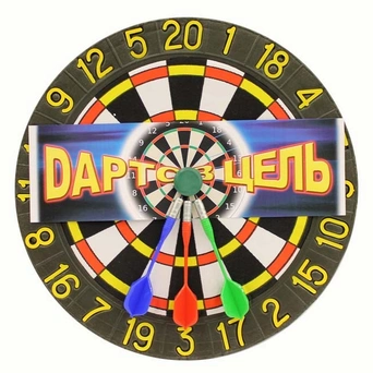 Дартс в классическом оформлении позволяет ребенку тренировать меткость, точность движений и ловкость, а также поможет активно и весело провести время. В дартс 225985 можно играть как одному, так и компанией. Цель игры – попасть дротиком как можно ближе к центру круга-мишени, на котором изображены деления и очки, сколько получает игрок за попадание в эту область. Дартс детский безопасен в использовании. он имеет традиционное исполнение, на концах дротиков - иглы, поэтому имеет смысл защитить стены или же играть на улице.