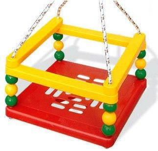 Все малыши любят качаться на качелях - это и весело, и иногда помогает успокоить непоседу. Качели представляют собой подвесную модель, изготовленную из высокопрочного и износостойкого яркого цветного пластика. Они крепятся на металлические кольца и оборудованы надежными высокопрочными шнурами. Спереди у качелей расположен подвижный ограничитель, который можно поднять, чтобы усадить ребенка. Качели можно крепить дома, на даче, во дворе. Изделие имеет небольшой вес, а также его можно легко снимать, чтобы переносить или хранить. С каждой стороны качелей есть несколько разноцветных бусинок, которые сразу привлекут внимание ребенка. Также изделие станет прекрасным тренажером для вестибулярного аппарата малыша и координации движений.