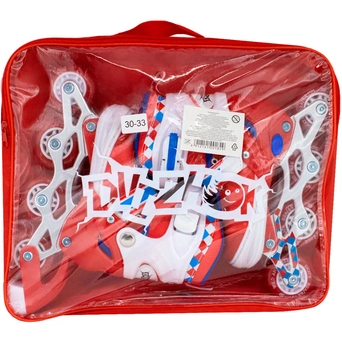 Размер упаковки: 39 х 7 х 35 смРазмер изделия: 30-33. D колёс 64*24 мм. Стелька 18 см. Высота платформы 9-9,5 см