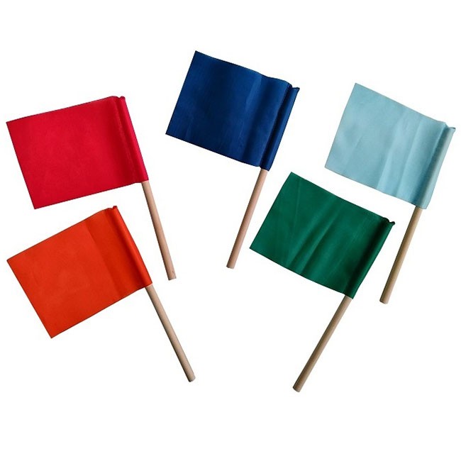 Яркий цветной флажок на деревянной палочке преждназначен для проведения спортивных соревнований, эстафет, различных мероприятий, а также для декора. Еще флажки используют для отметки начала и конца колонны детей при переходе проезжей части. Эти флажки выполнены из прочной яркой ткани.
