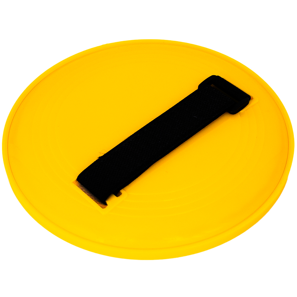 Мыч прилипает к тарелке за счет эффекта липучки.
