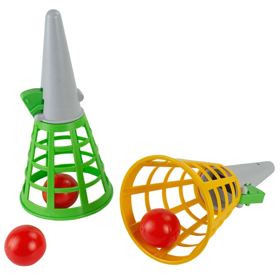 • Нажимая на курок, пружина изгибается и выстреливает шарик, который нужно поймать корзинкой.
