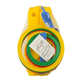 Дети любят подвижные игры и соревнования, ведь они не только веселые, но также развивают физическую выносливость, ловкость и быстроту реакции. Набрось кольцо У653 - это увлекательная игра для самых ловких, метких и находчивых. Отлично подойдет для помещения и улицы. Пластмассовые кегли закреплены на прочной подставке. Плоские круги удобны и достаточно широки для того, чтобы набросить их соответствующую цель смог даже маленький ребенок. Все элементы разноцветные, хорошо видны с дальнего расстояния. Рекомендуется предлагать играть на занятиях физкультуры, организации спортивных состязаний и конкурсов.