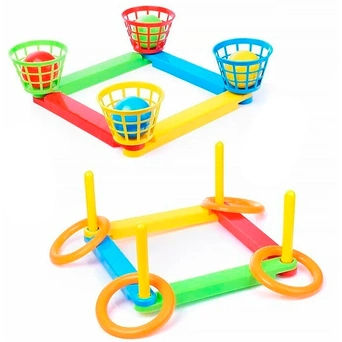 Веселая игра "Кольцеброс" понравится активным и подвижным малышам. Отлично подойдет для садиков и детских учреждений, при проведении соревнований, эстафет, игр на открытом воздухе. Кольцеброс — это занятная и несложная игра для малышей, которая активно развивает крупную моторику и координацию движений. Суть игры в том, чтобы забрасывать кольца на специальный штырь, а мячи - в корзины. Кольцеброс изготовлен из прочной и безопасной пластмассы.