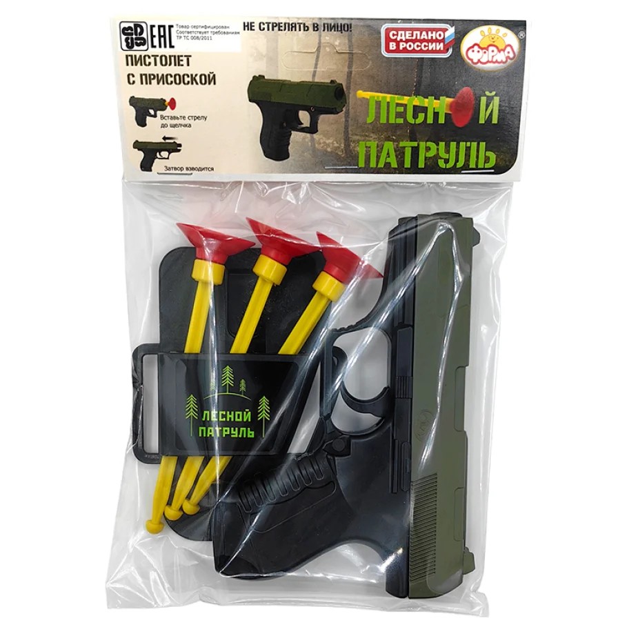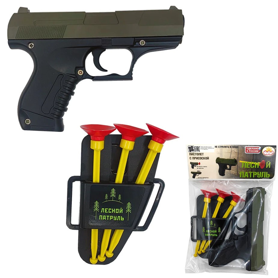 Комплектация: пистолет - 1 шт., пуля - 3 шт., держатель - 1 шт.