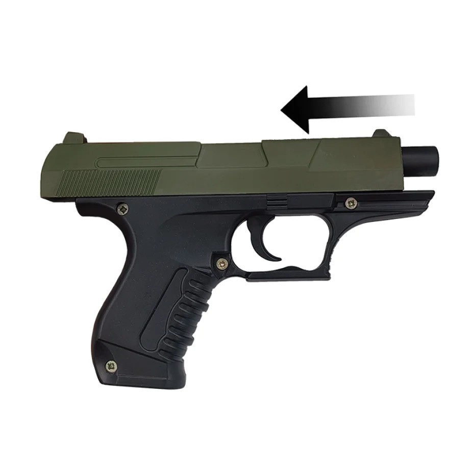 - при нажатии на спусковой крючок стреляет безопасными пулями;