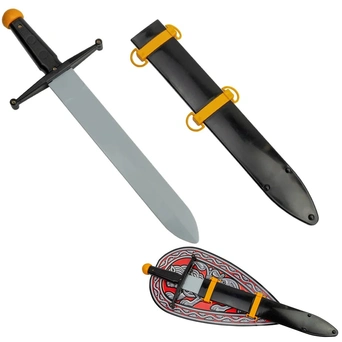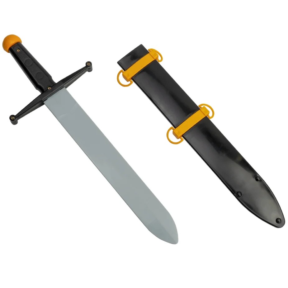 Модель 2016г. Меч полиэтиленовый, литой для ролевой игры в защитника отечества. Отличается надежным креплением клинка и рукояти, сбалансированной массой в районе рукояти, что позволяет упражняться в кручении мечом без вредных нагрузок на кисть руки ребенка. Ножны оснащены петлями для удобного ношения при помощи веревки через плечо.