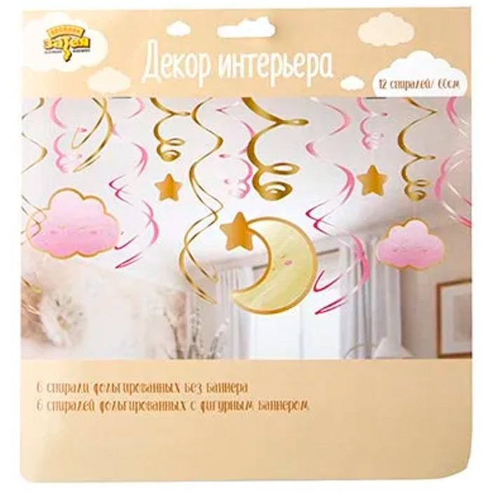 Комплектация: спираль - 12 шт. (6 фольгированных спиралей без баннера и 6 фольгированных спиралей с баннером 16 см )