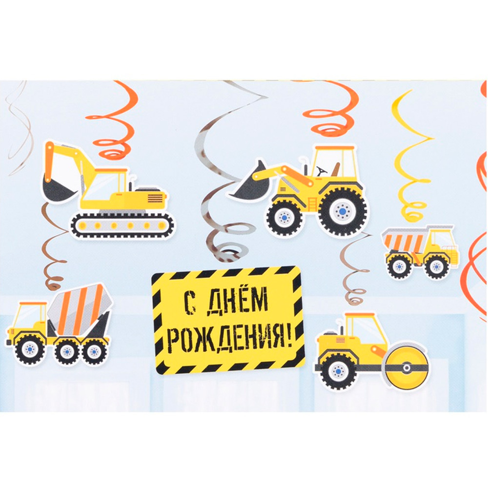 Декорация в виде фольгированных спиралей с подвешенными баннерами - декоративное украшение интерьера.