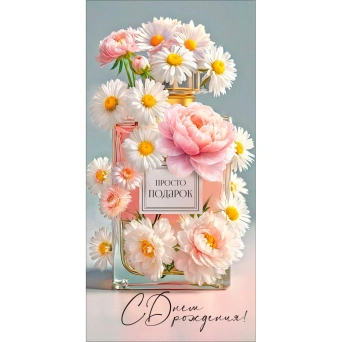 Эта стильная открытка станет идеальным дополнением к любому подарку или самостоятельным поздравлением к празднику.