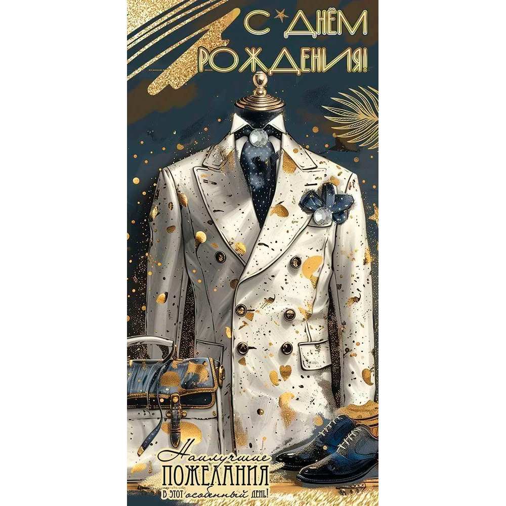 Эта стильная открытка станет идеальным дополнением к любому подарку или самостоятельным поздравлением к празднику.