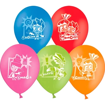 Яркие цветные латексные шары с рисунком дополняют друг друга, т. к. оформлены в одном стиле и тематике.