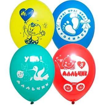 Яркие цветные латексные шары с рисунком дополняют друг друга, т. к. оформлены в одном стиле и тематике.