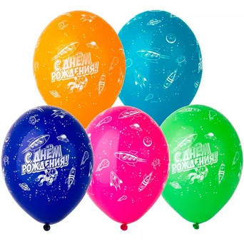 Яркие цветные латексные шары с рисунком дополняют друг друга, т. к. оформлены в одном стиле и тематике.
