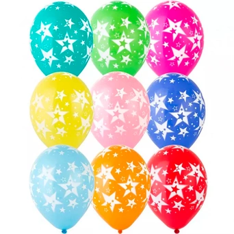 Яркие цветные латексные шары с рисунком дополняют друг друга, т. к. оформлены в одном стиле и тематике.