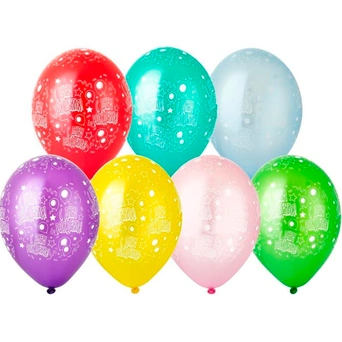 Яркие цветные латексные шары с рисунком дополняют друг друга, т. к. оформлены в одном стиле и тематике.
