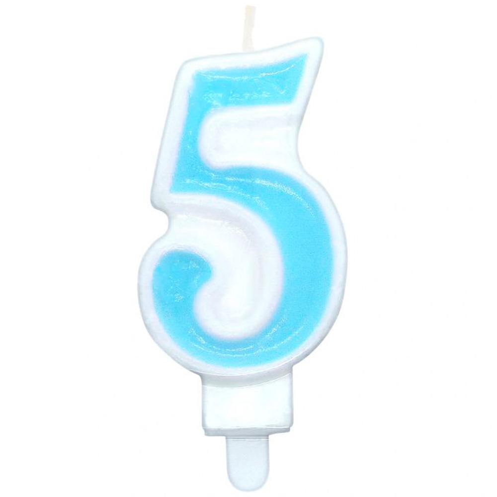 Свеча для торта Цифра "5" Веселая вечеринка голубой L0285-BL