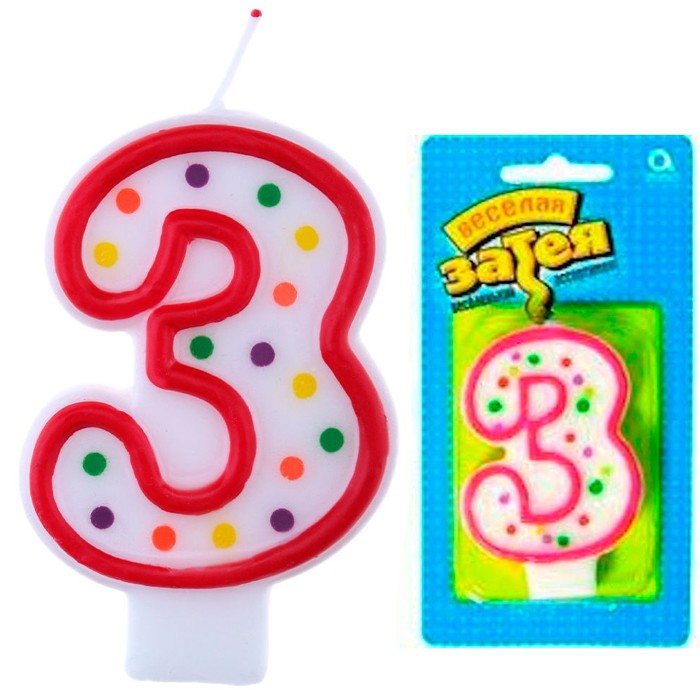 Свечи для торта цифра 3 7,6см 1502-0141 /12/