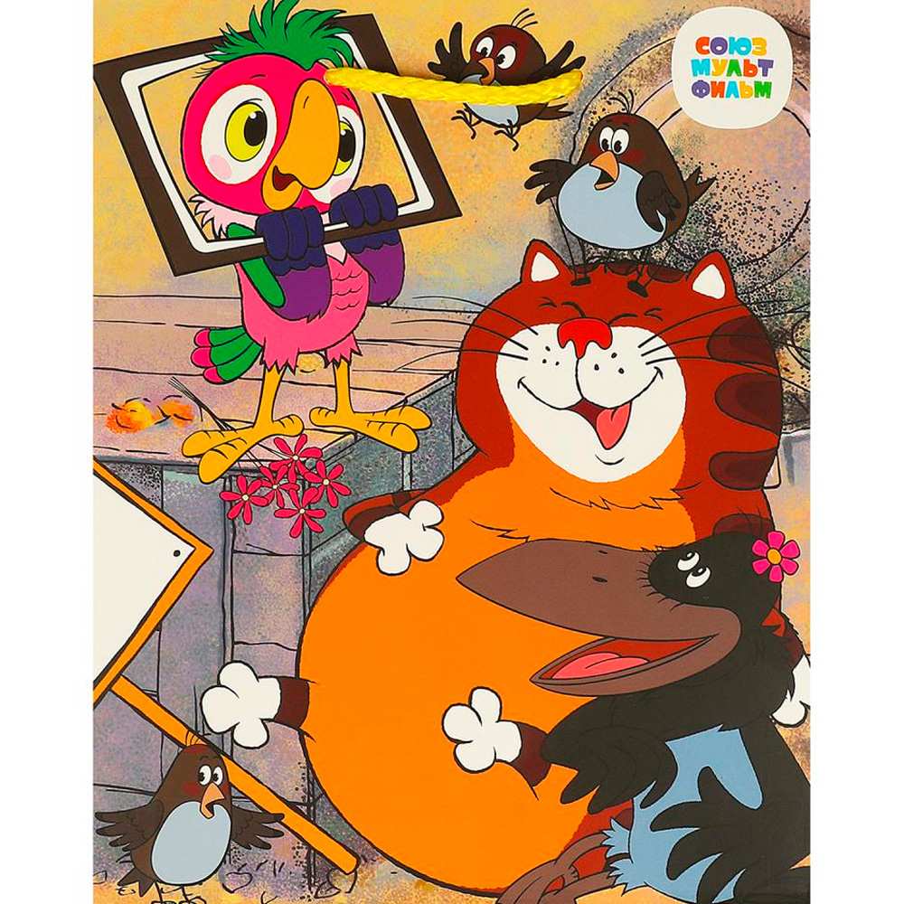 Плотный цветной пакет с ярким принтом позволит разместить подаки на любой случай.
