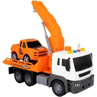 Машина выполнена в реалистичном проработанном дизайне с подвижными игровыми элементами. На эвакуатор погружена машина, с которой можно играть отдельно.