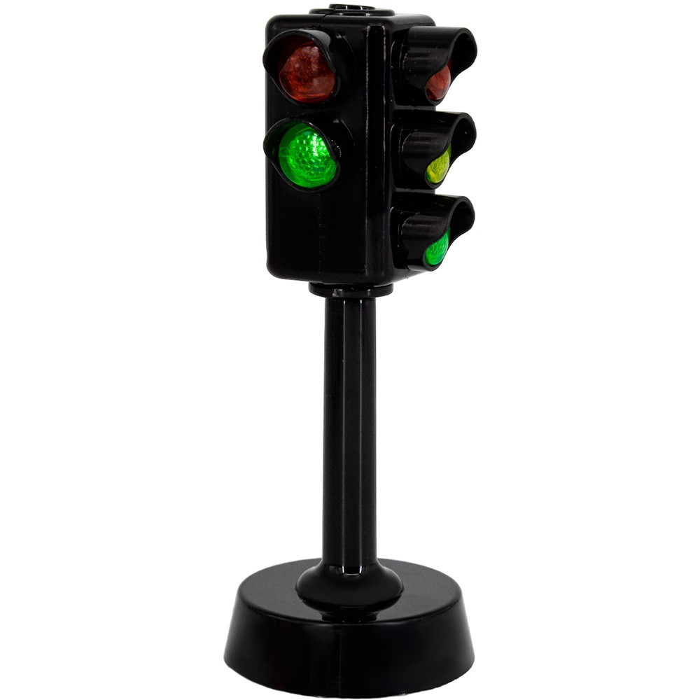 Светофор имеет достаточно реалистичный внешний вид. Работает на батарейках. При нажатии на кнопку светится, как настоящий светофор. Изготовлена игрушка из безопасного и нетоксичного пластика.