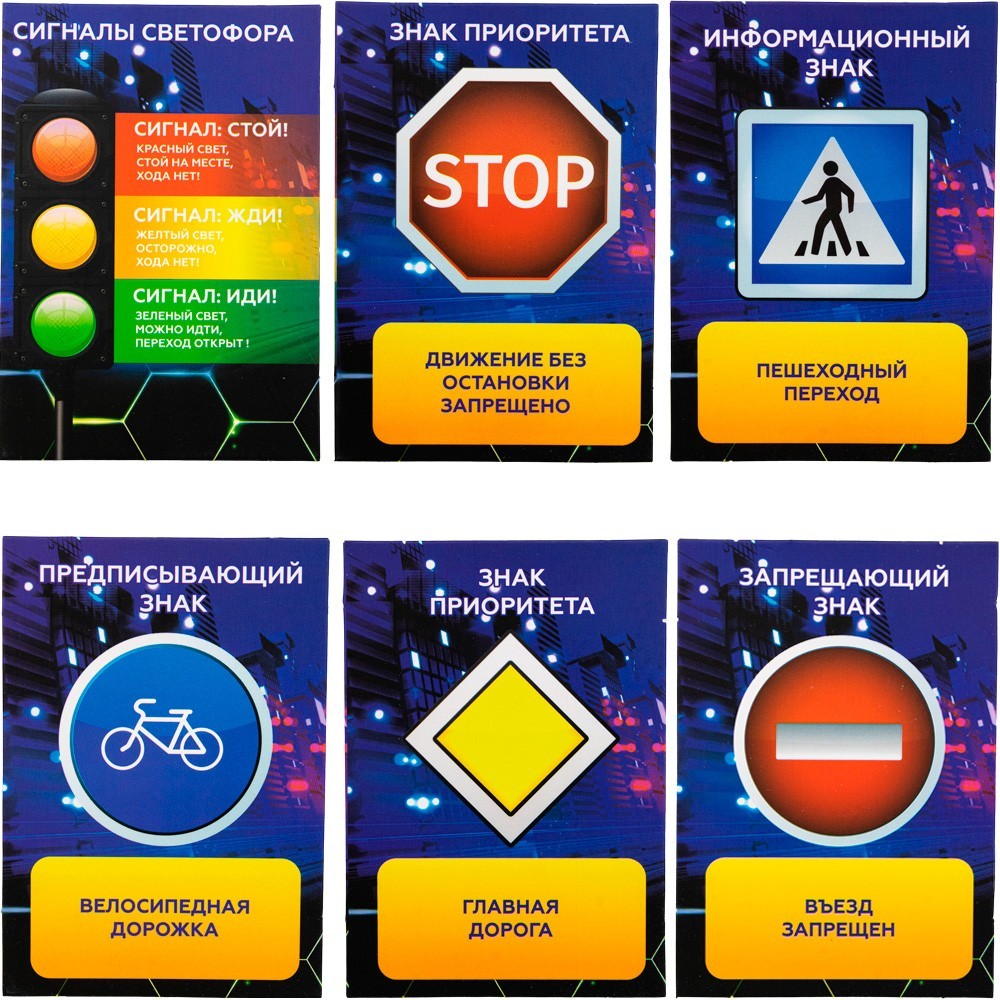 Комплектация: светофор (11,8 х 4,5 х 4,5 см) – 1 шт., двухсторонние карточки (10 х 7 см) – 6 шт.