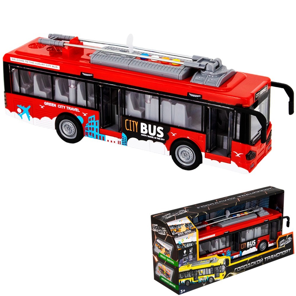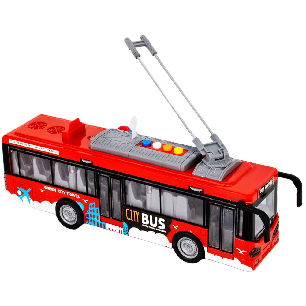 Троллейбус имеет хорошую детализацию, а открывающие дверки добавляют еще больше реалистичности. Внутри игрушки есть инерционный механизм, с помощью которого машинка катиться самостоятельно. Сделана игрушка из высококачественного, прочного пластика.