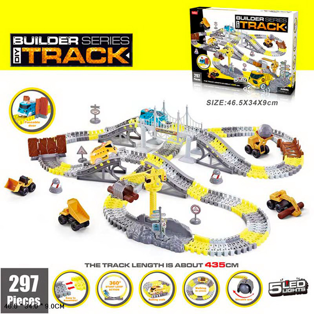 Трек собирается из деталей, которые позволяют собирать разные конфигурации дороги, даже петли.