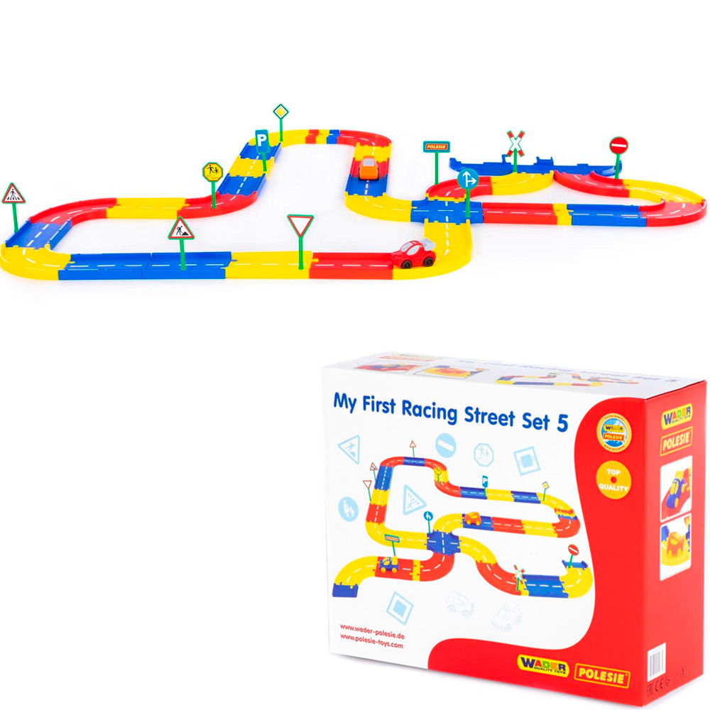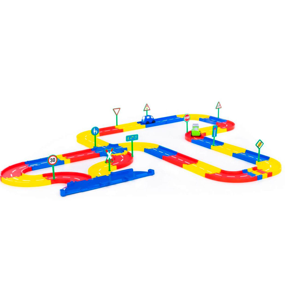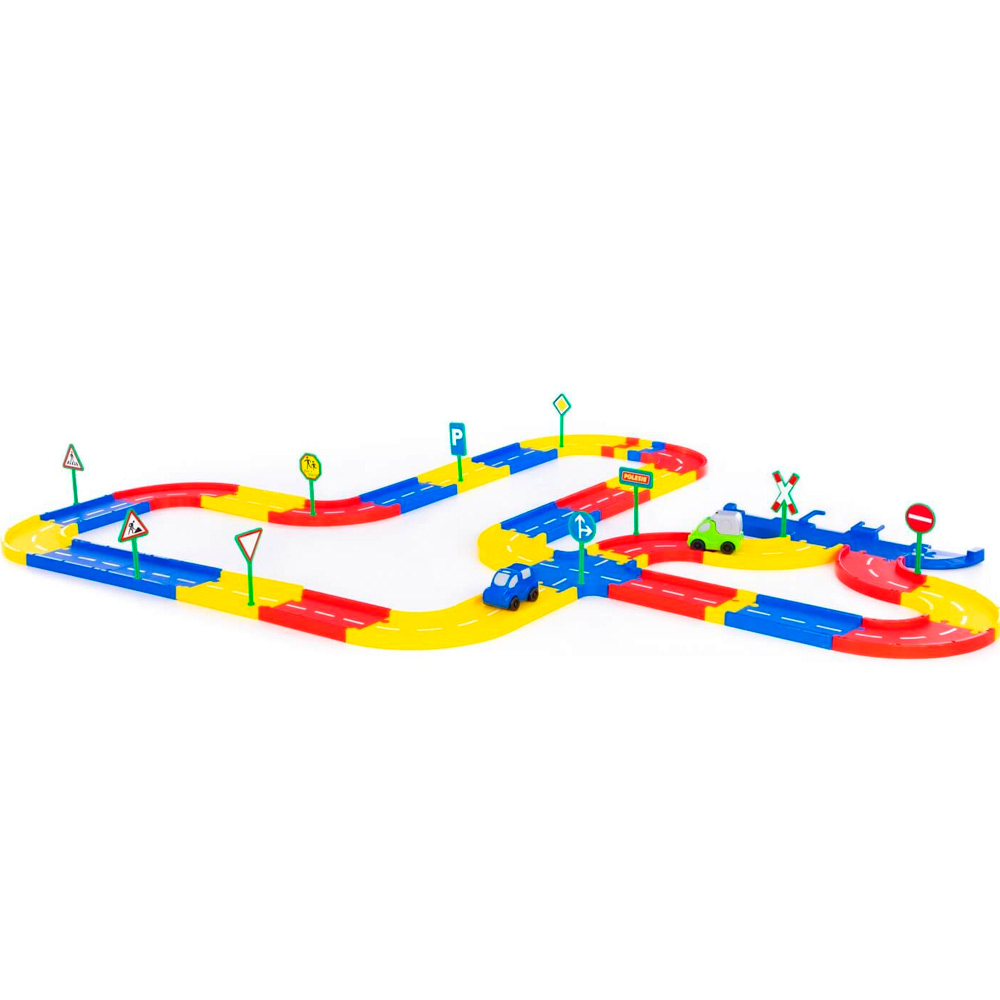 Комплектация: элементы трека - 48 шт., 10 дорожных знаков, 2 автомобиляМатериал: пластик