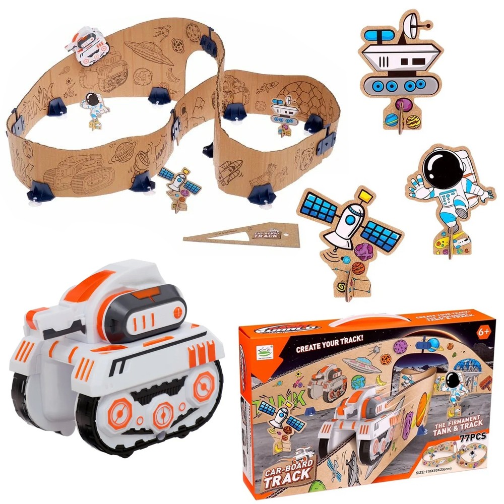 Подарите своему малышу возможность создавать уникальные гоночные трассы с картонным треком и танком. Этот набор не только развлечёт ребёнка, но и поможет развить его воображение и творческие навыки.