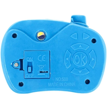 Музыкальный фотоаппарат оборудован кнопками, нажимая на которые можно прослушать мелодии. Работает от батареек.