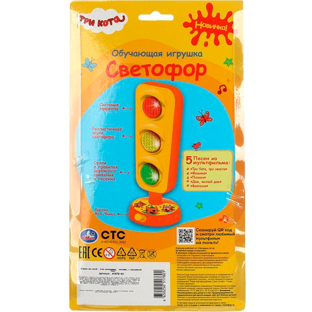 Обучающий светофор «Три кота» ТМ «УМка» непременно понравится маленькому поклоннику мультсериала про любознательных котят: