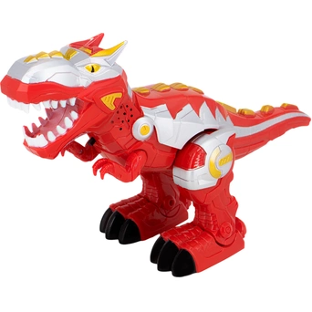 У динозавра подвижные лапы, ходит, рычит, мигают цветные огоньки.