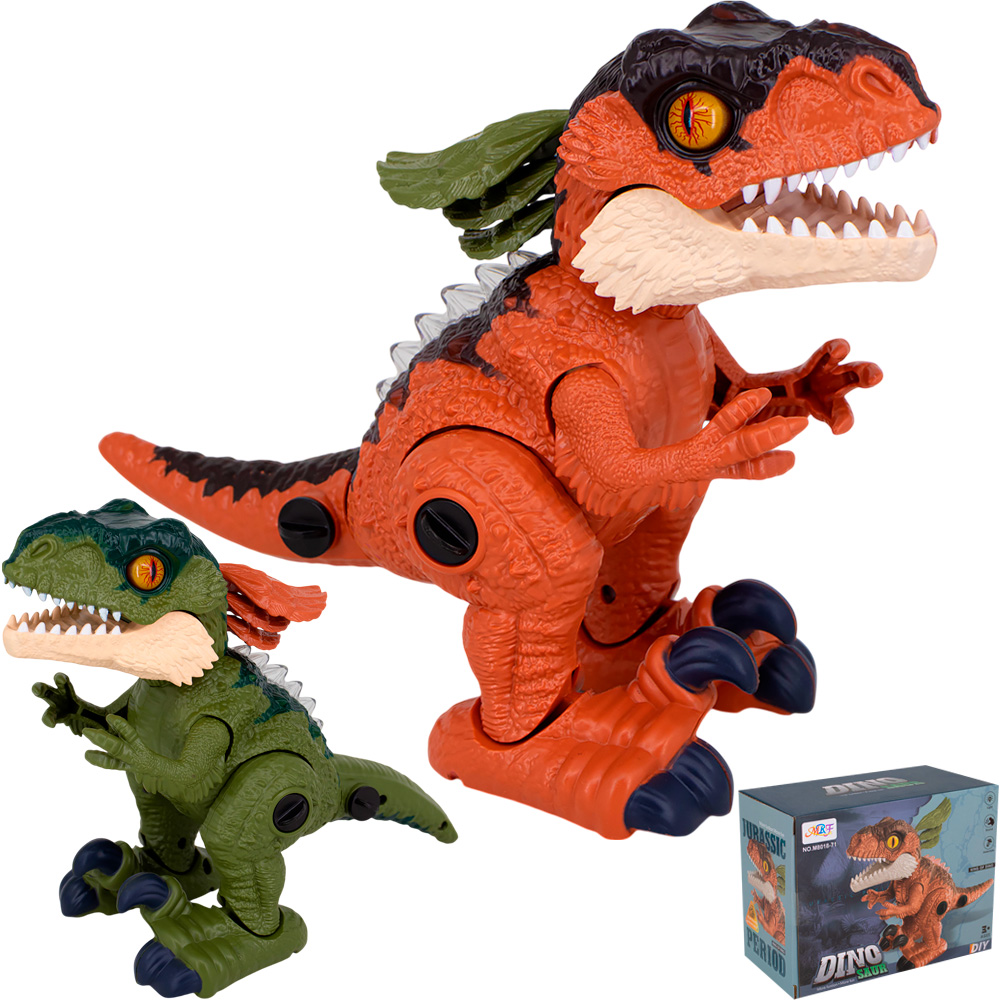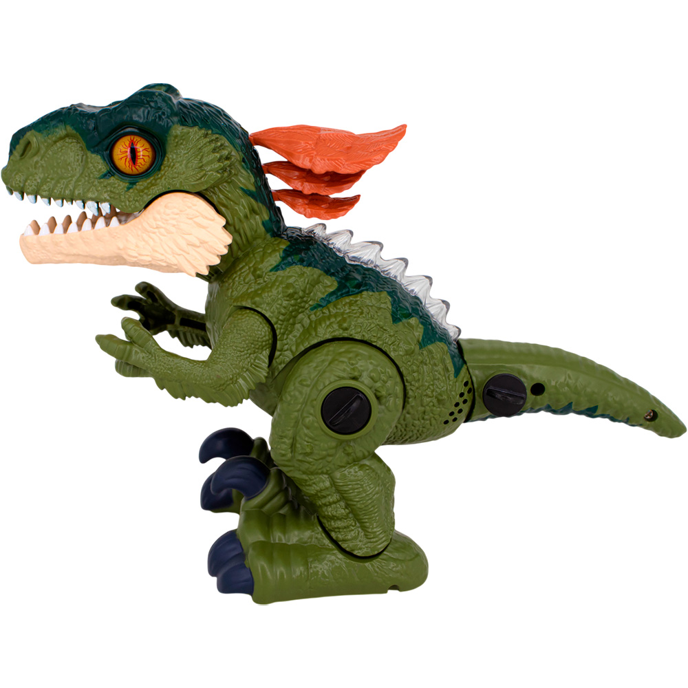 У динозавра подвижные лапы, ходит, рычит, подсветка глаз, открывает рот.