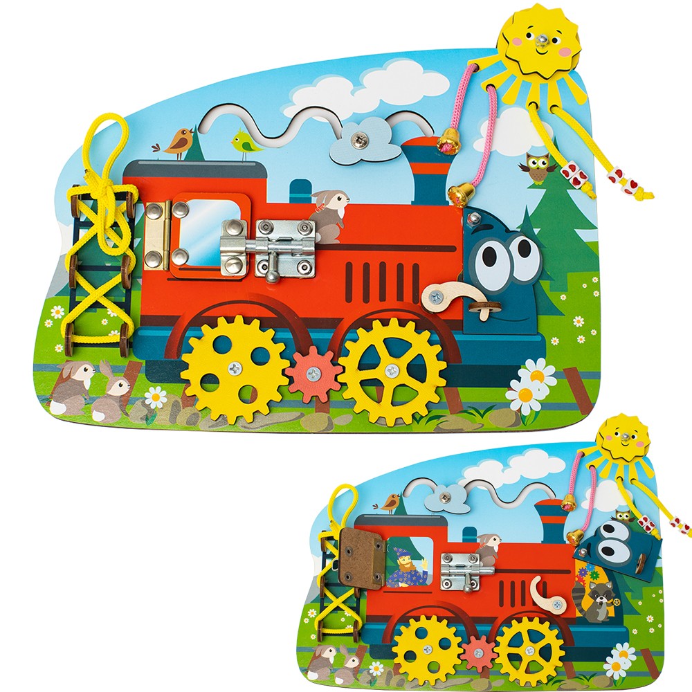 Бизиборд «Паровозик» - это развивающая и очень занимательная игрушка, которая привлечет внимание каждого малыша! Ребенок будет с большим любопытством играть и крутить подвижные элементы игрушки.