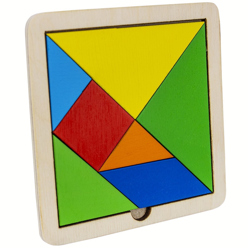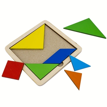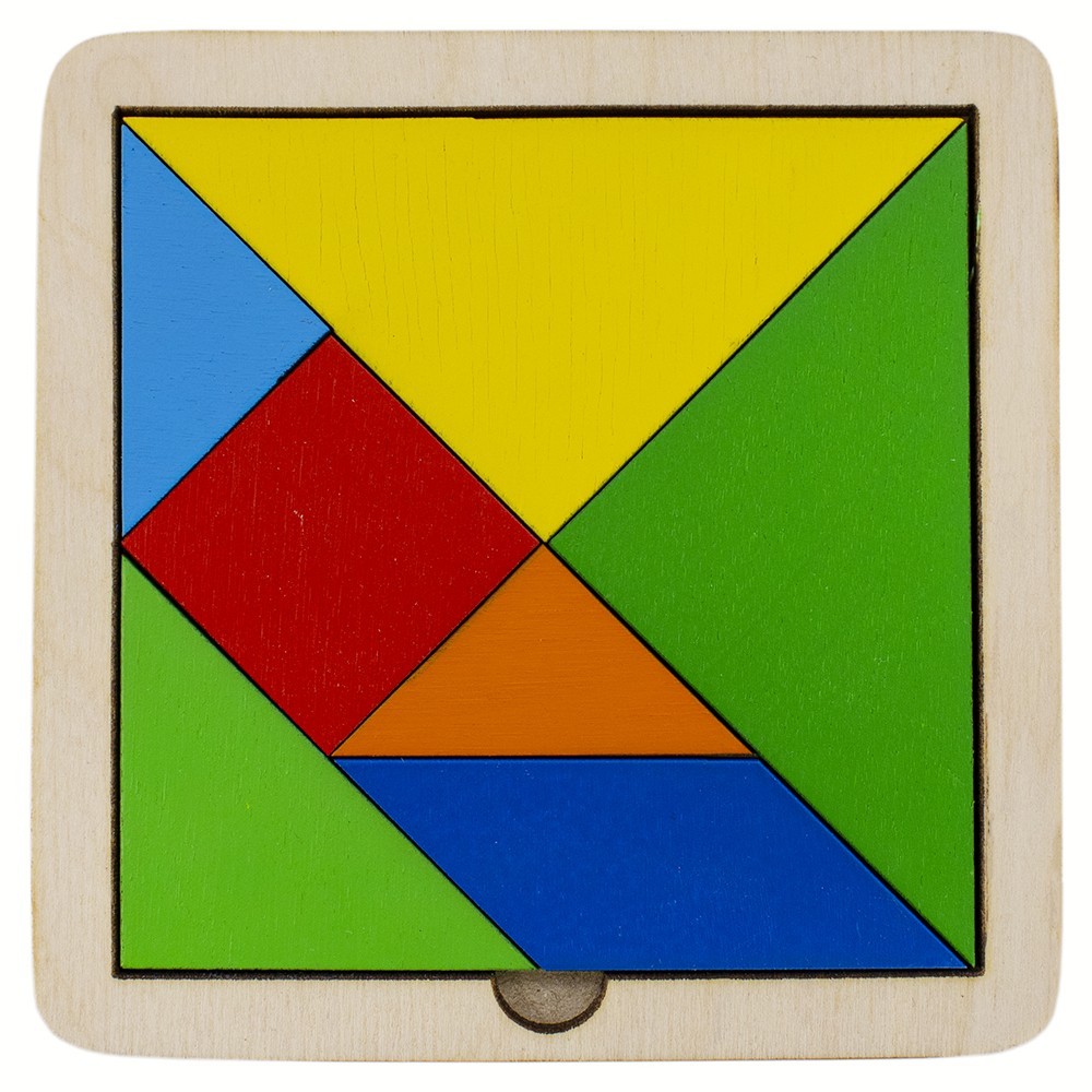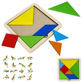 Головоломка представляет собой деревянную панель, на которой расположены разноцветные геометрические фигуры. Задача игры – сложить детали в рамку так, чтобы все элементы были задействованы. Схема сборки находится на обороте!