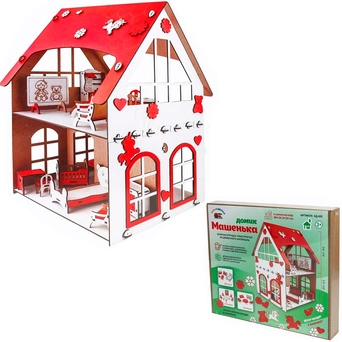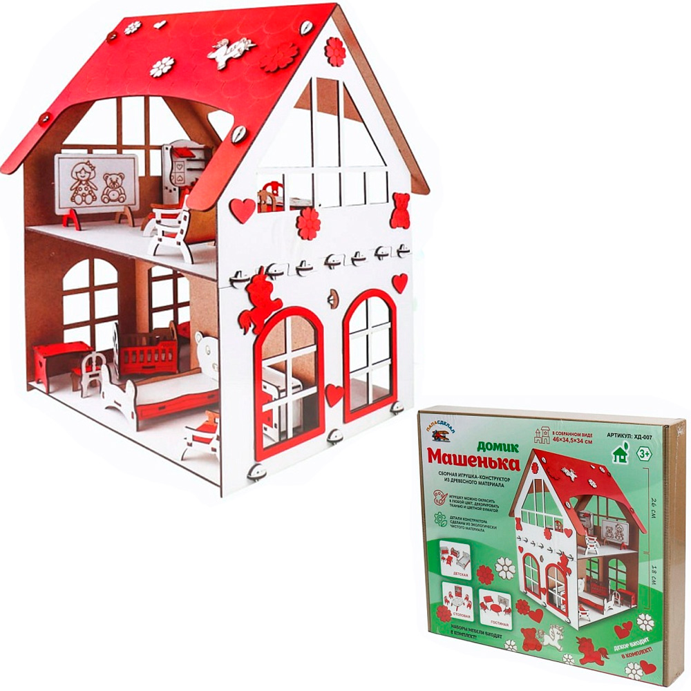 Игрушка конструктор "Домик Машенька", с набором мебели и декора стильная модель от производителя "ПапаСделал".