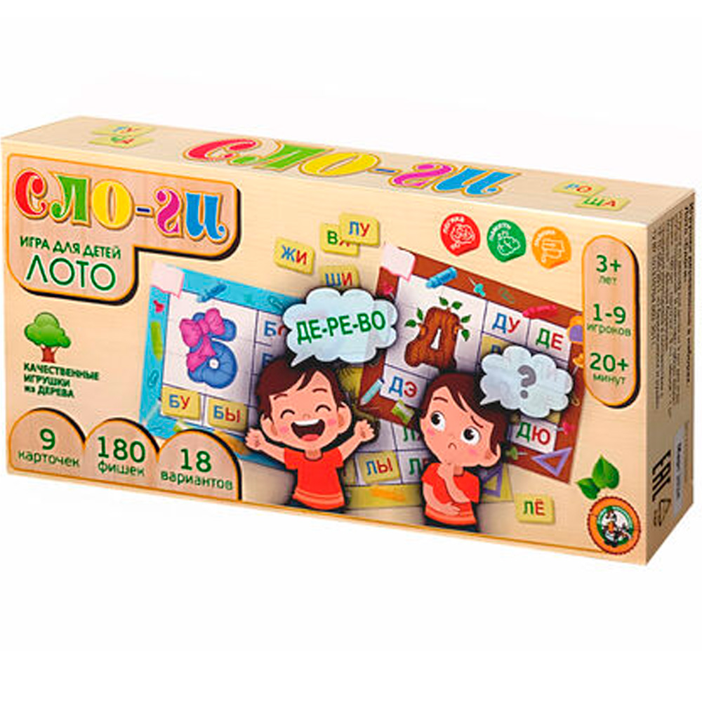 Развивающее деревянное лото для маленьких «Слоги» в игровой форме помогает сформировать у ребенка умение читать слоги и слова.