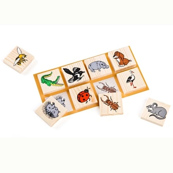 Оригинальное деревянное лото 6-2222-2 от компании "Томик" содержит поля и фишки с изображениями животных. Фишки изготовлены из экологически чистой хвойной древесины, а изображения нанесены методом шелкографии (они не отклеиваются и не отрываются). В лото может играть от 2 до 6 человек. Цель игры состоит в том, чтобы заполнить поля фишками с соответствующими изображениями. Лото «Животный мир» развивает память, логику и образное мышление. Также малыш познакомится с различными животными. Фишки можно также сортировать по разным признакам, считать или конструировать из них постройки или узоры.