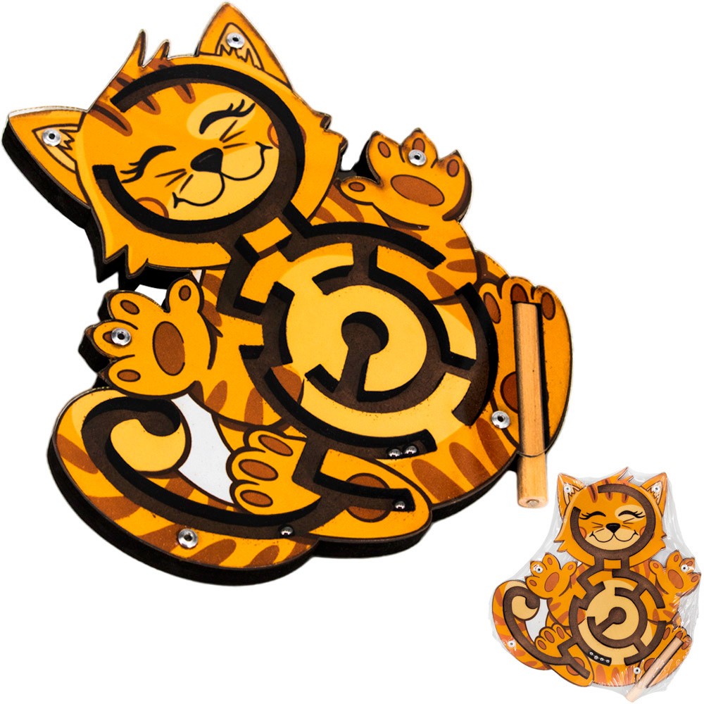 Комплектация: деревянный лабиринт с шариками «Котенок» – 1 шт., магнитная палочка для перемещения шариков –1 шт.