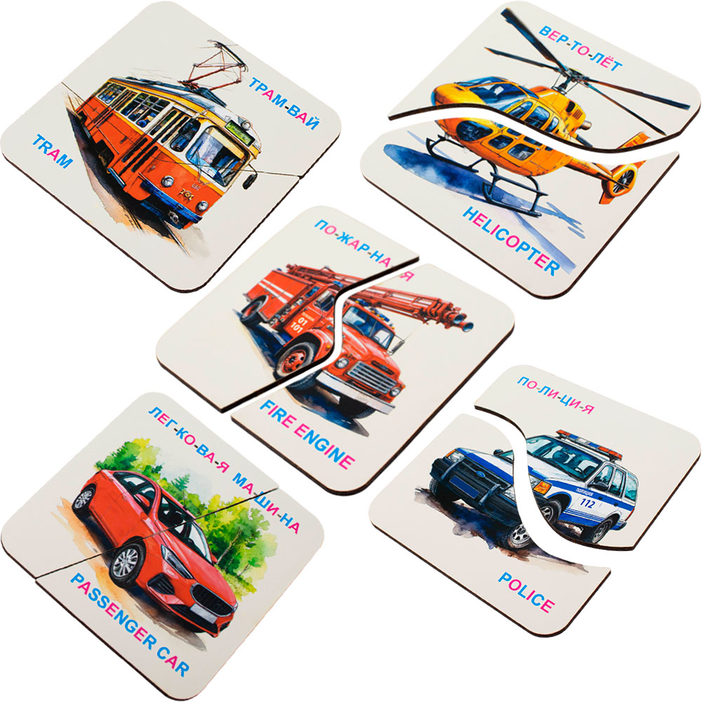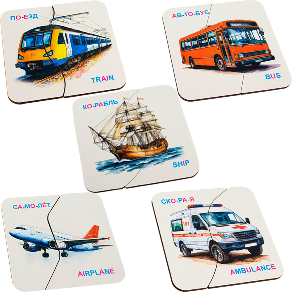 - реалистичные картинки; подписи на русском и английском языках;