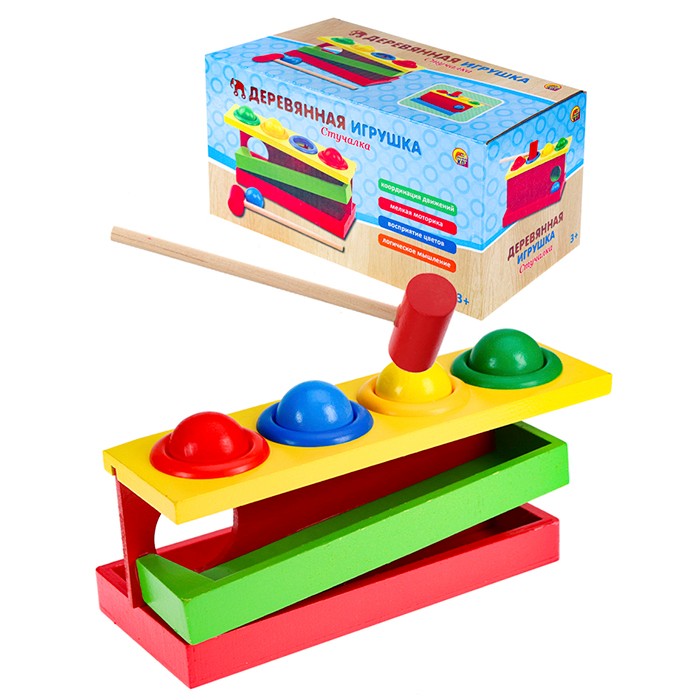 • Задача ребенка - при помощи молоточка забить шарик соответствующего цвета в отверстие.