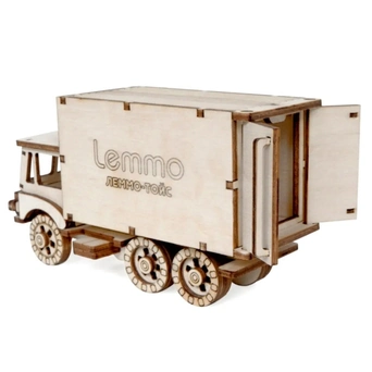 - у собранной модели вращаются колеса и открываются двери фургона;