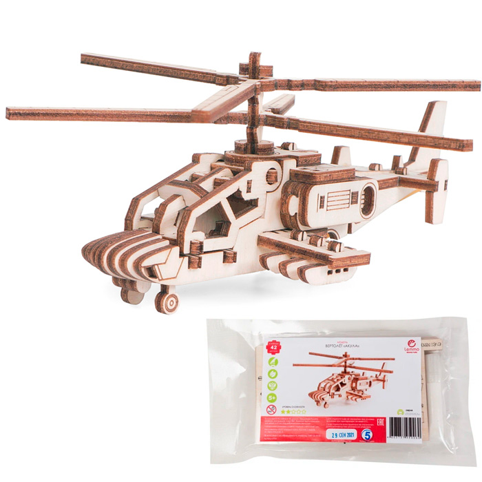 Деревянный конструктор представляет собой оригинальный 3D-пазл, который легко собирается без помощи клея.